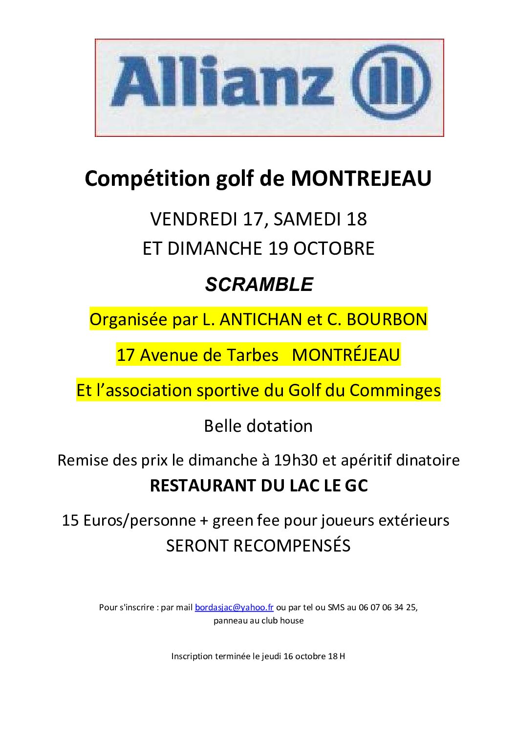 Compétition golf de MONTREJEAU VENDREDI 17, SAMEDI 18 ET DIMANCHE 19 OCTOBRE SCRAMBLE Organisée par L. ANTICHAN et C. BOURBON 17 Avenue de Tarbes MONTRÉJEAU Et l’association sportive du Golf […]